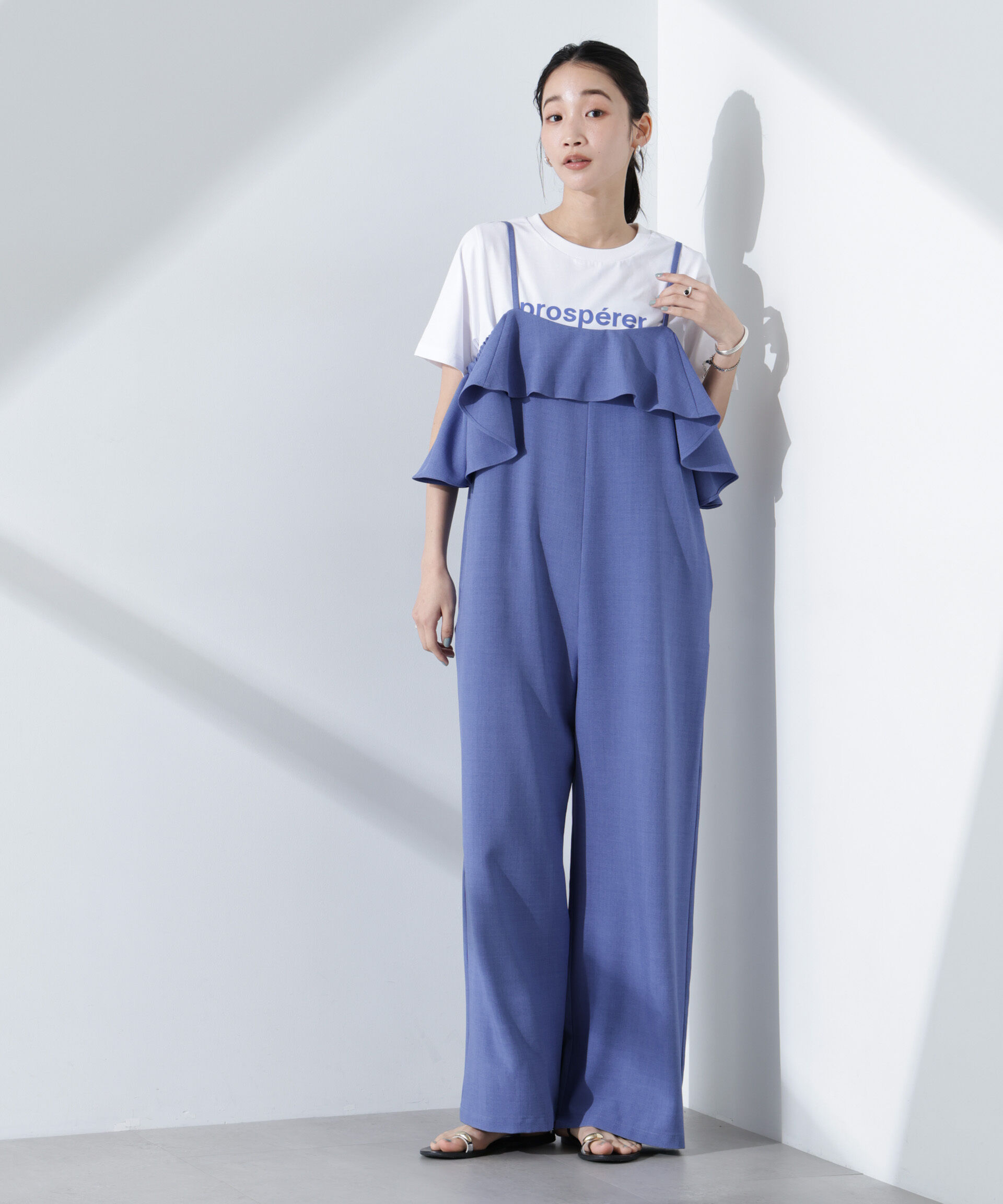 【ナノ・ユニバース/NANO universe】 2wayオフショルダーフリルオールインワン