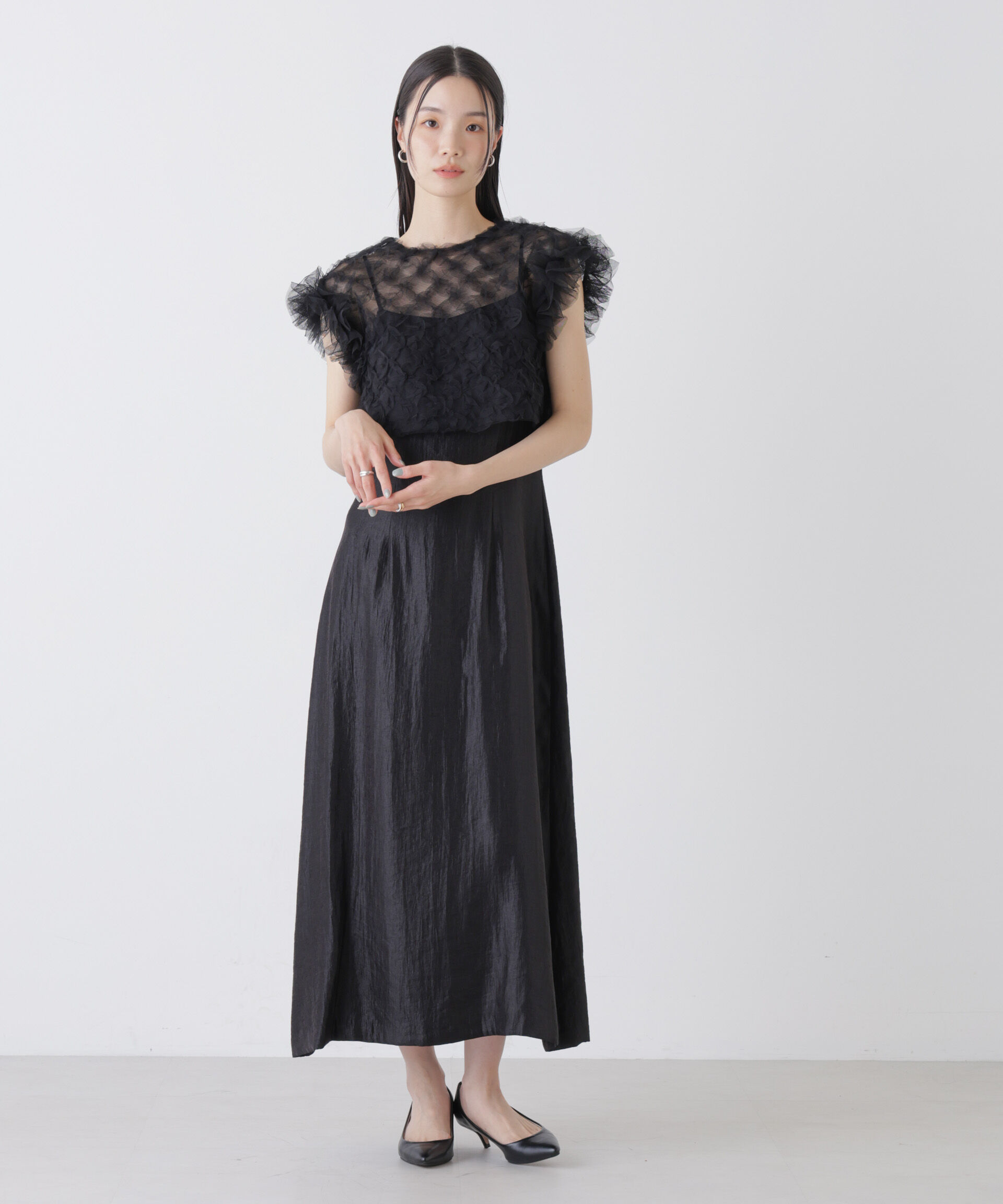 存在感たっぷりのチュールブラウスが華やぎを演出【2025 AW】kaene(カエン)存在感たっぷりの立体チュールブラウスが目を惹くドレス。キャミドレスはカップ付.. |