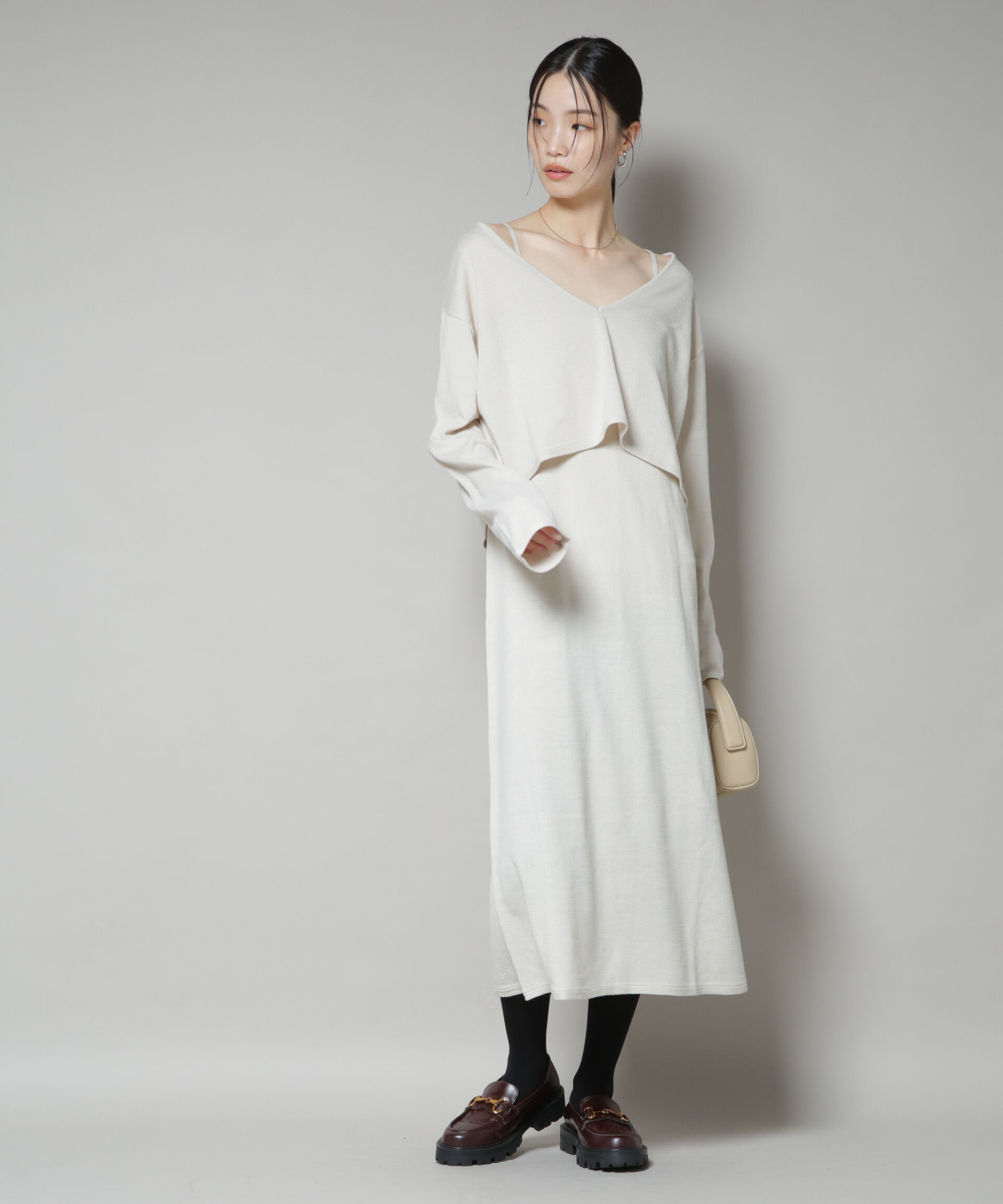 【ナノ・ユニバース/NANO universe】 ニットキャミワンピース×クロップドVネックニット セット