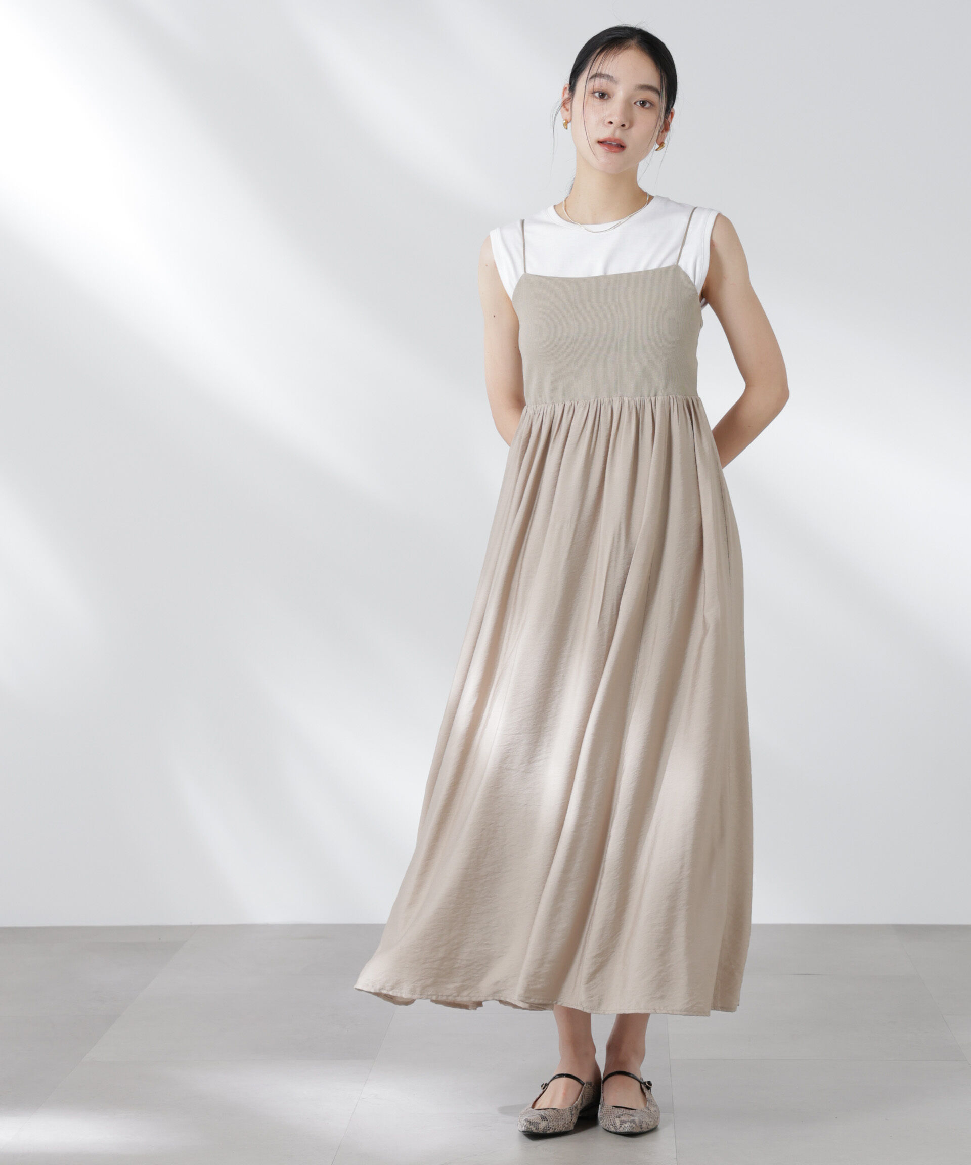 【ナノ・ユニバース/NANO universe】 リブドッキング2wayキャミワンピース