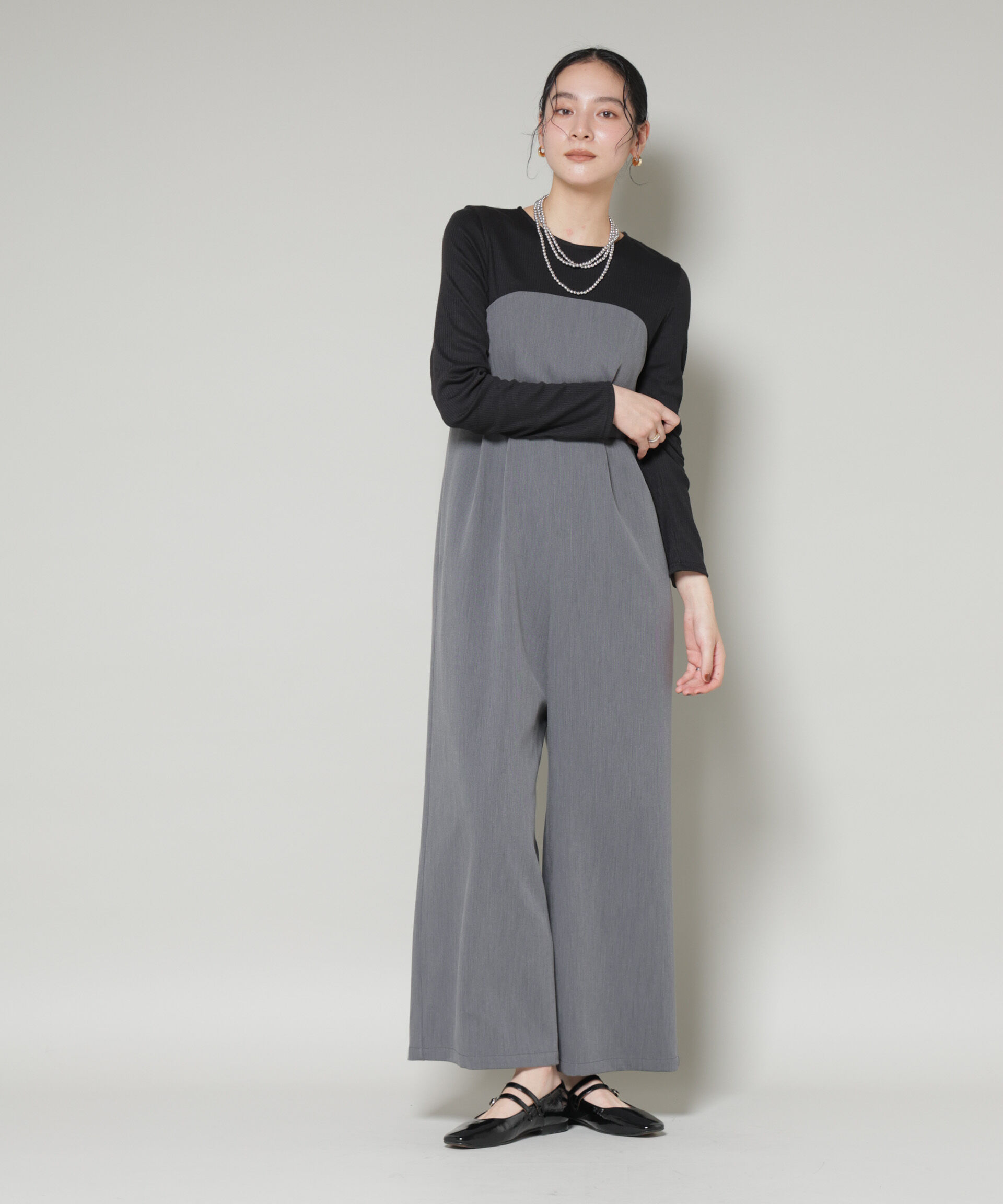 一枚で完成!フェミニン×モードのドッキングオールインワン【2025 AW】 NANO universe(ナノ・ユニバース)カジュアルテイストのリブカットソーと、キレイ目な.. |