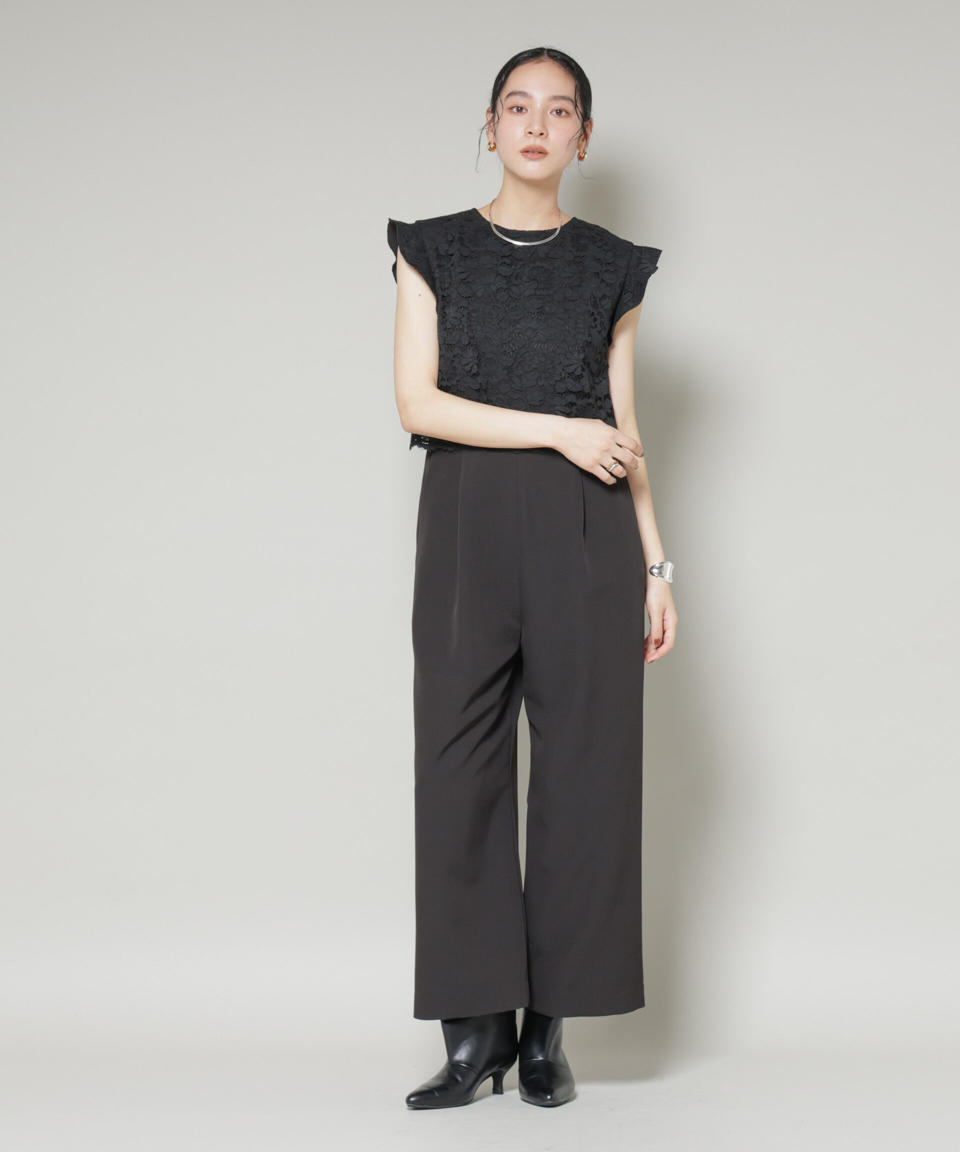 お呼ばれシーンに重宝する大人デザインのオールインワン【2026 SS】NANO universe(ナノ・ユニバース)繊細なレーストップスをドッキングしたオールインワン。.. |