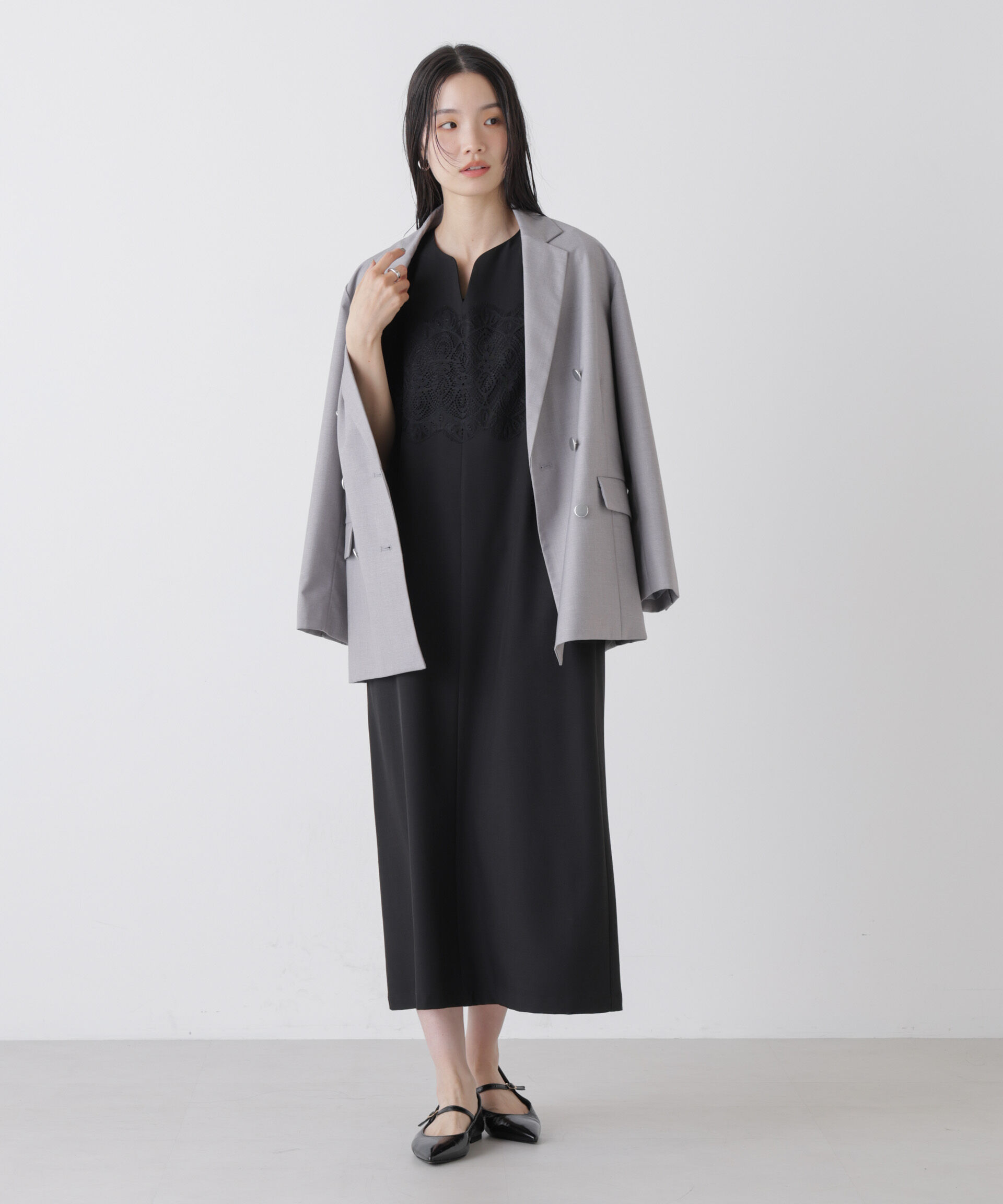 【ナノ・ユニバース/NANO universe】 レースロングジレ×キャミワンピースセット
