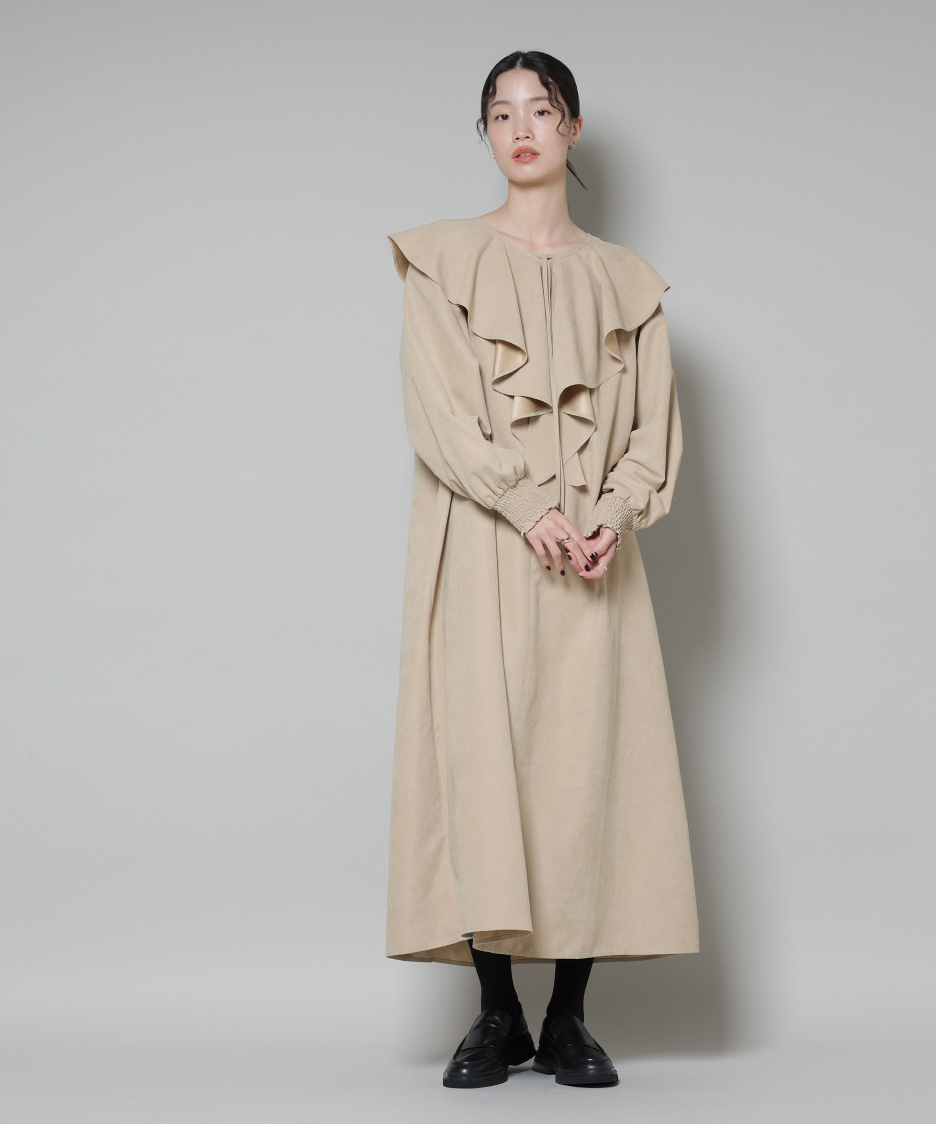 【ナノ・ユニバース/NANO universe】 取り外し可能ラッフルカラー付きピーチフレアワンピース