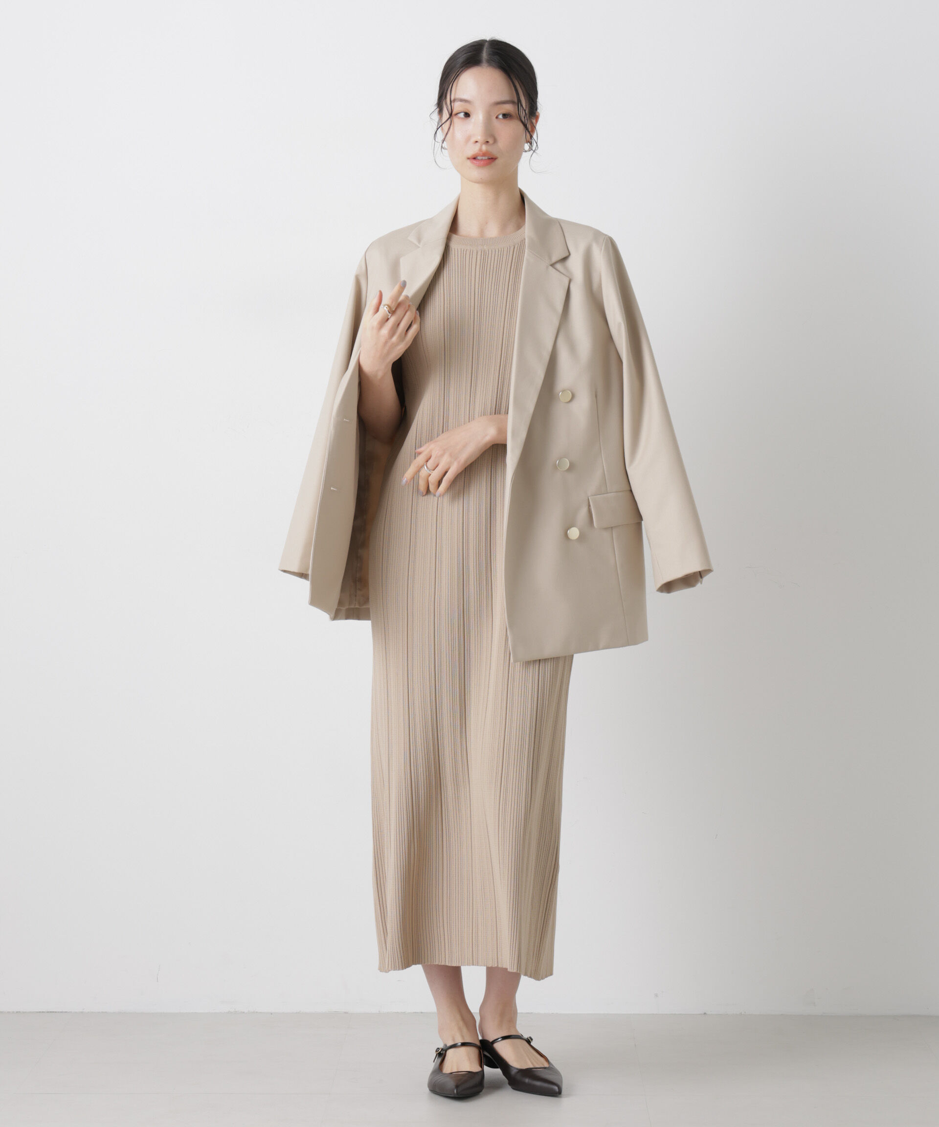 洗濯機で洗えて毎日に寄り添う万能ワンピース【2026 SS】 NANO universe(ナノ・ユニバース)凹凸感のあるランダムリブ編みが縦ラインを強調しすっきりとした.. |