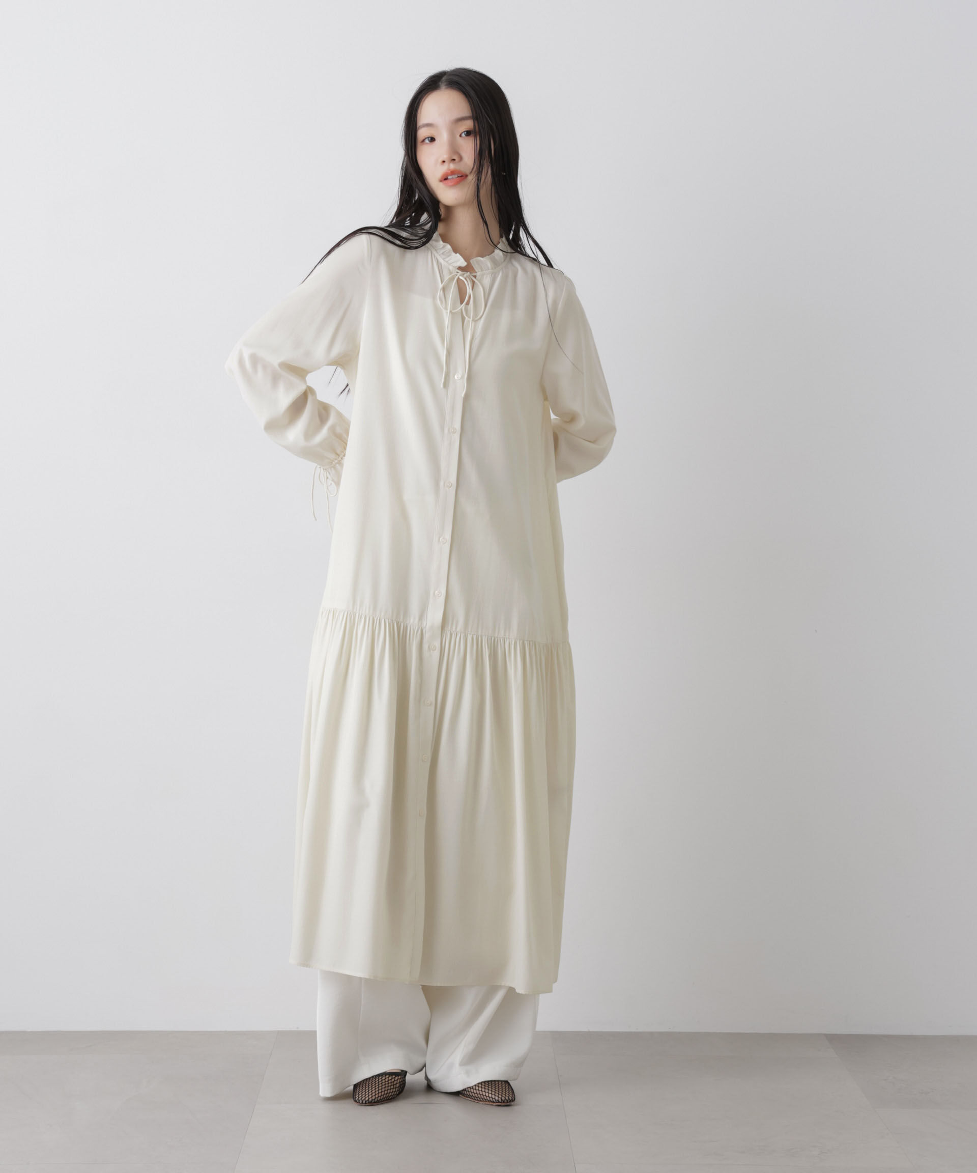 ナチュラルなフェミニンさが大人可愛いギャザーワンピース【2025 SS】NANO universe(ナノ・ユニバース)前後2wayの異なる表情のデザインを楽しめるマキシ丈ワ.. |