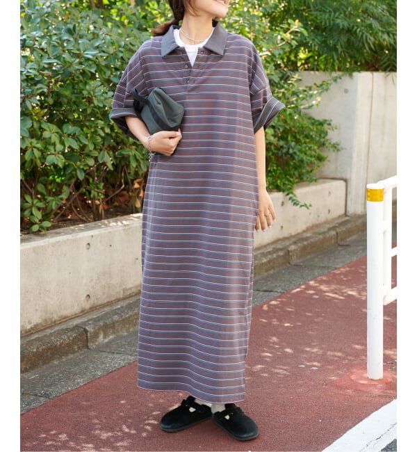 【アウトドアプロダクツ ユージュアルシングス/OUTDOOR PRODUCTS Usual Things】 ≪予約≫ボーダーポロシャツワイドワンピース