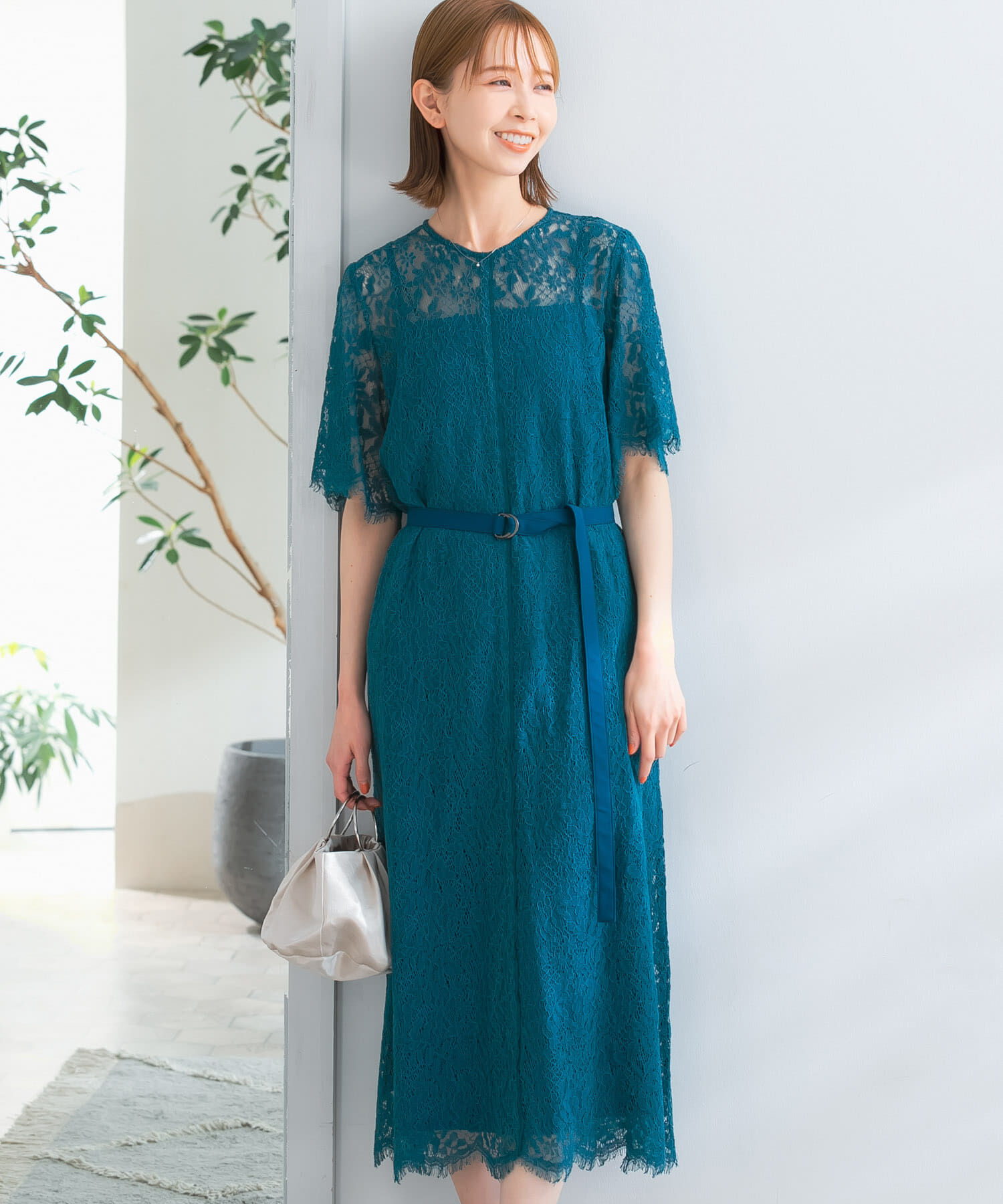 【Iラインの美シルエットが映える、大人のレースドレス】色の濃淡による配色が、大人の女性らしさ漂うレースドレス。Iラインシルエットのため、シャープな印象.. |