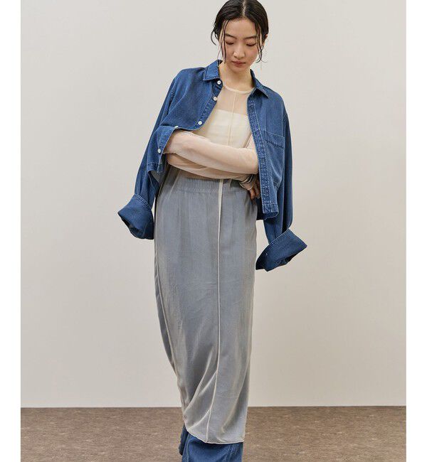 ◆2024-25秋冬◆ADAM ET ROPE' FEMME【Material】光沢のあるポリエステルとナイロンを使用し、染め分けする事でシャンブレーカラーを表現したトリコットベロア。.. |