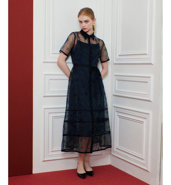 【アルアバイル/allureville】 【LOULOU WILLOUGHBY】オーガンジーフラワー刺繍ワンピース