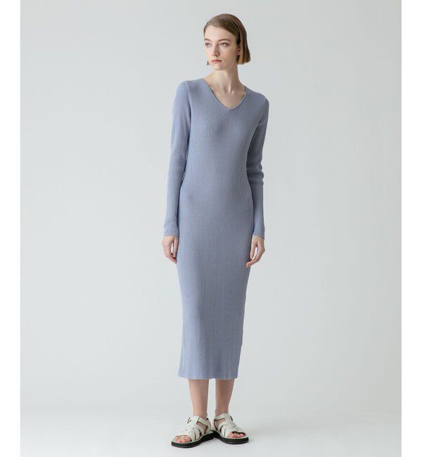 鎖骨を美しく見せるVネックとモダンなドルマンスリーブがポイントの女性らしいシルエットのワンピース。シーズンレスで着用できるニットのようなアムンゼン(.. |