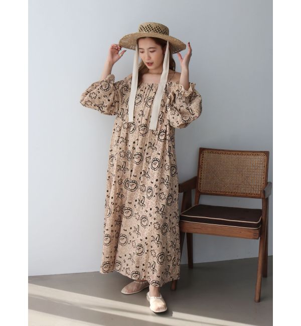 【アングリッド/Ungrid】 エスニックオフショルギャザーボリュームワンピース