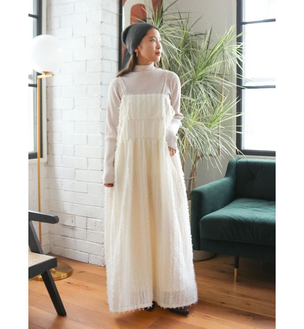 起毛感がかわいいジャカードキャミワンピース ■デザイン ギャザー切り替えを入れ、ボリュームもありつつもすっきり見えるデザインに。 裾にかけて広がるシル.. |