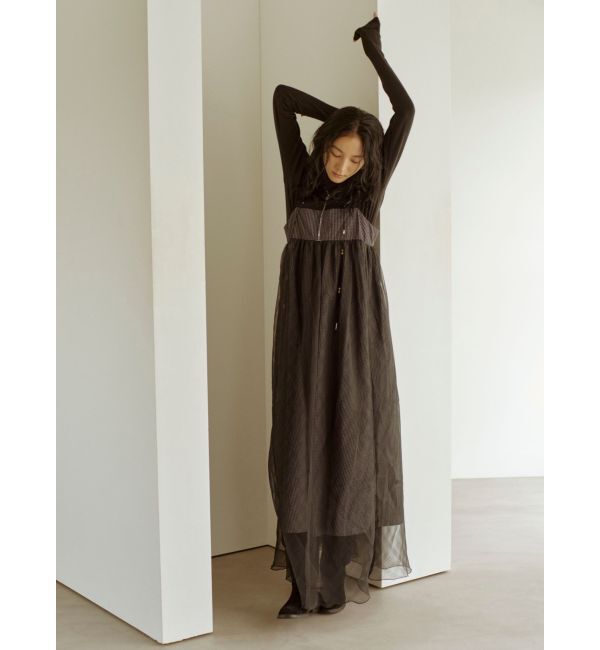 異なるチェック柄をチュール生地の上にレイヤードし、動きのある表情がポイントのキャミワンピース ■デザイン 裾にかけて自然に広がるフレアシルエットと、ギ.. |