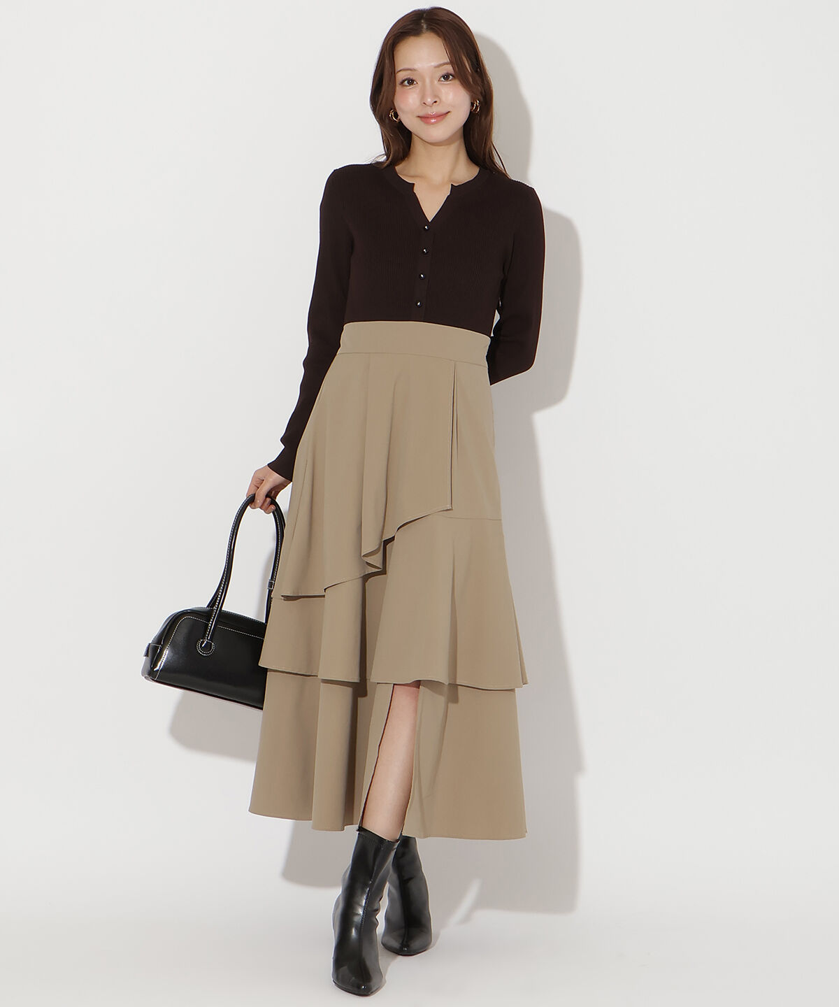 【アンドクチュール/AND COUTURE】 アシメラッフルティアードワンピース