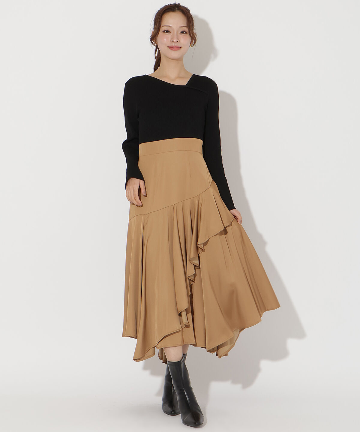 【アンドクチュール/AND COUTURE】 アシメスカートドッキングワンピース