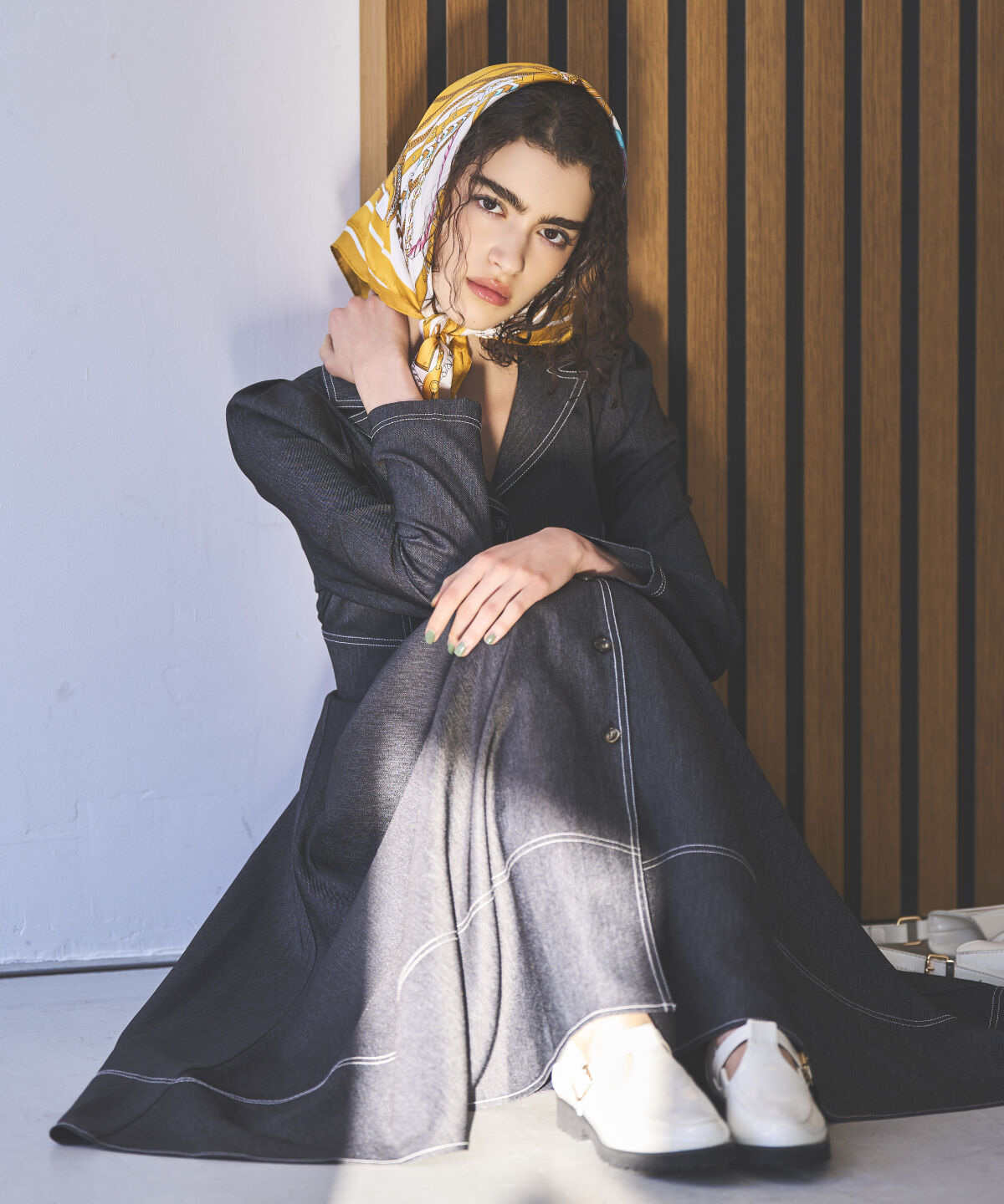 立体スリーブが描く、ドラマティックなドレススタイル【Design/Styling】・立体感のあるティアードスリーブが印象的なブラウスと、艶やかなキャミワンピースを.. |