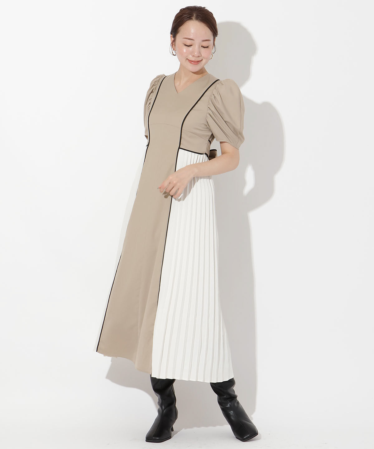 【アンドクチュール/AND COUTURE】 消しプリーツドッキングワンピース