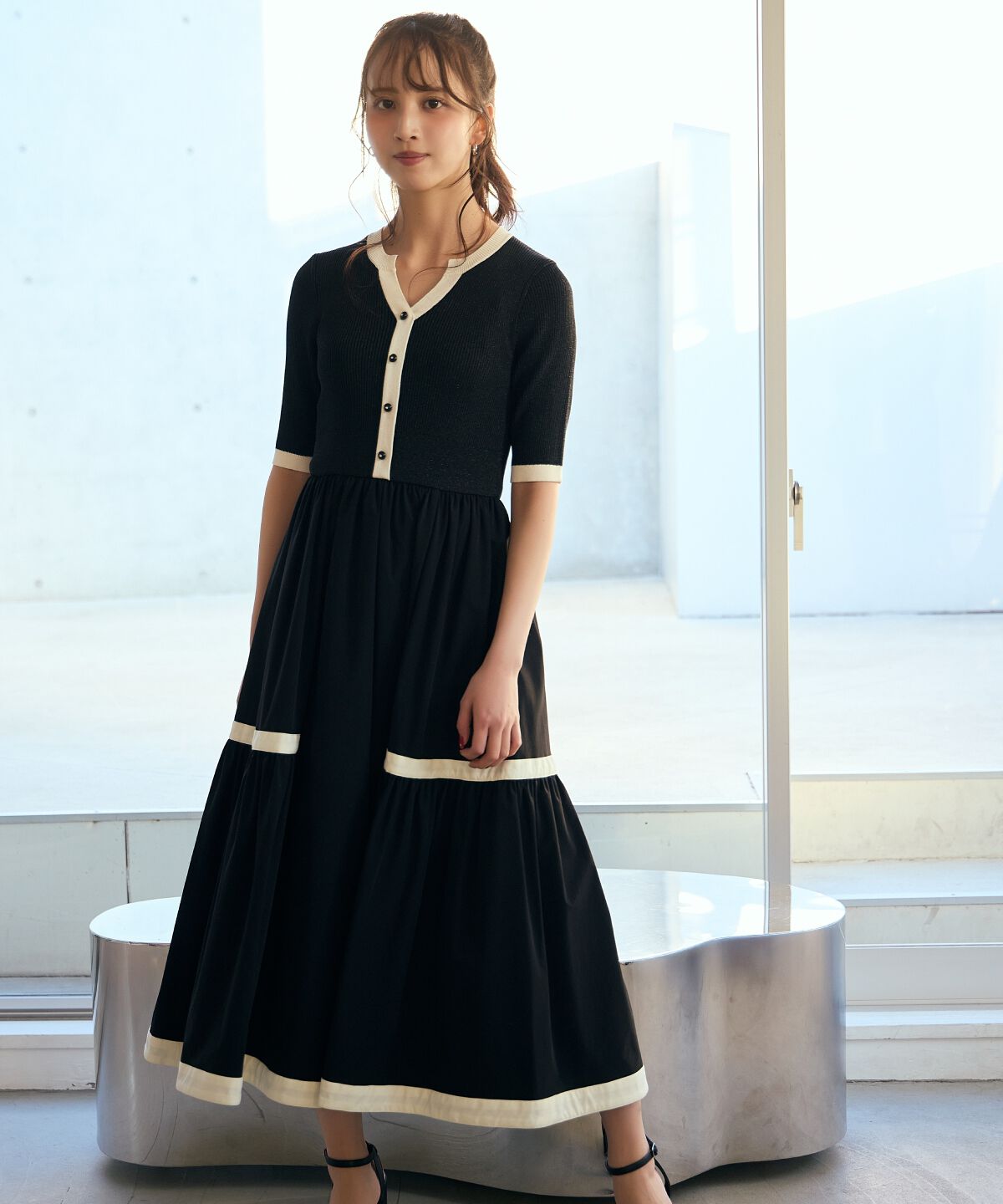 【バルーンシルエットがトレンドライクなドッキングワンピース】【Design/Styling】バルーンスカート×ラメニットのドッキングワンピースは着るだけで旬なスタ.. |