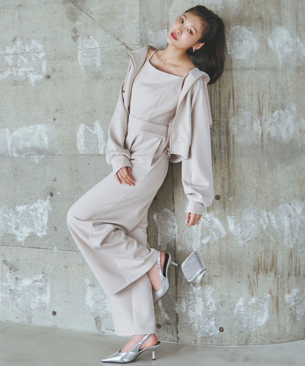 リラクシーな抜け感と女性らしさを両立した、刺繍パーカーとオールインワンのセットアイテム【Design/Styling】・華奢なストラップのキャミオールインワンと、.. |