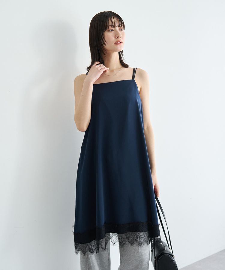 サテンの光沢が映えるミニマルなキャミチュニック光沢のあるサテン素材が上品に揺れるチュニック丈のキャミソール。腰まわりを自然にカバーしてくれ、裾のレー.. |