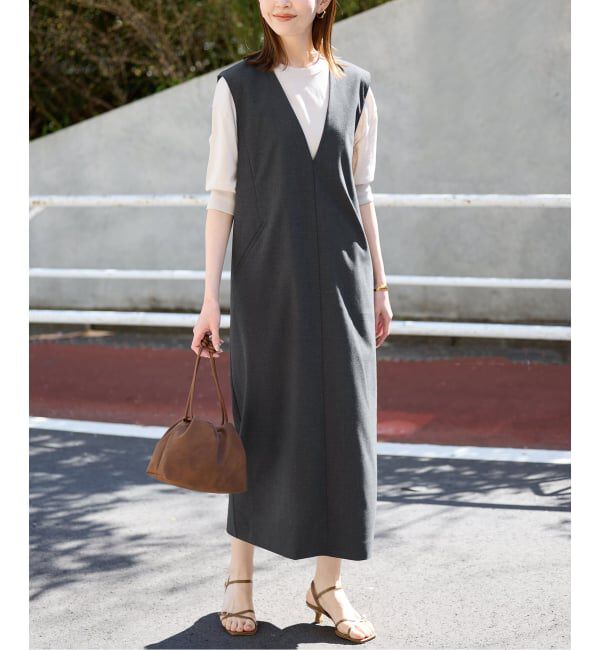 【イエナ/IENA】 Vネックセンタースリットジャンパースカート