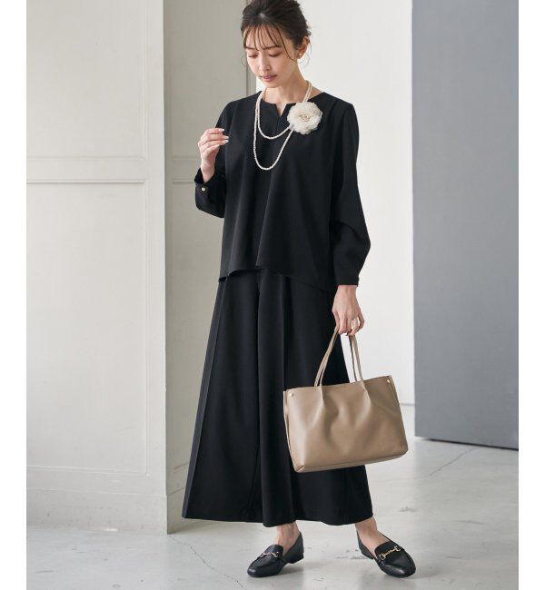 バックペプラム切り替えのトップスと、シンプルでベーシックなテーパードパンツのセットアップ。入学式・卒業式などのハレの日にも使えます。着心地フリーなブ.. |