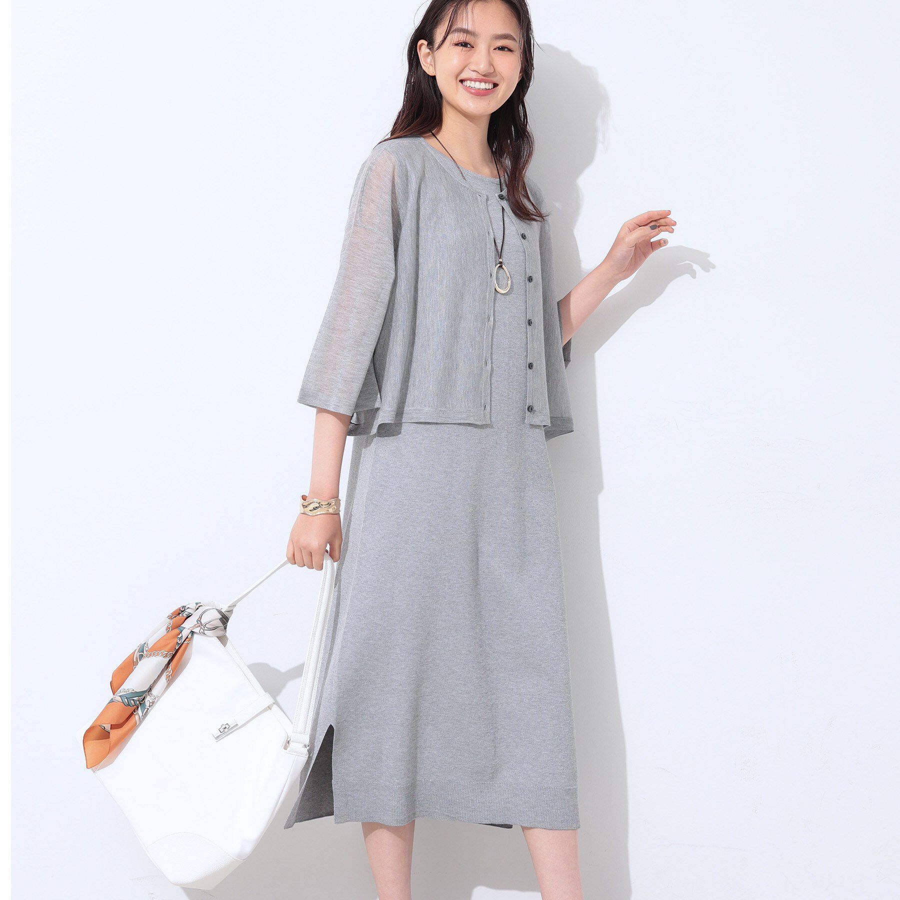 【デザインポイント】トップスとワンピースがセットになった着回し出来るアイテム。トップスはシアー感のある編み地で、ワンピースはトップスと同素材の透けな.. |