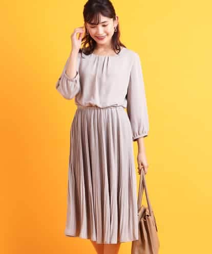 ◆通勤・フォーマルスタイル◆上品に仕上がったプリーツワンピース。オフィススタイルはもちろん、ちょっとした食事会にも◎トレンドのミディ丈が上品な印象。