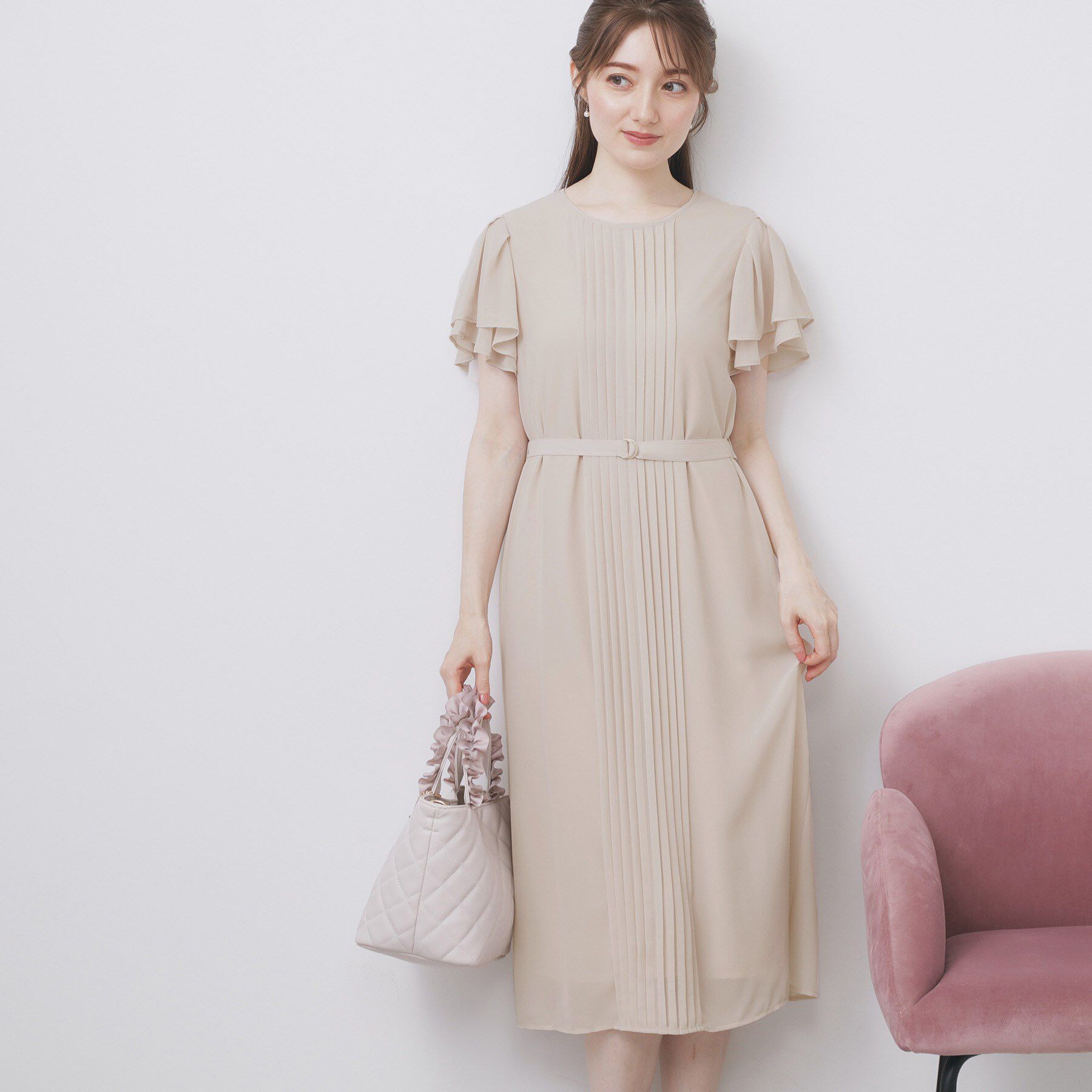 【インデックス/index】 ベルト付きプリーツフレアワンピース【洗濯機OK/イージーアイロン/防シワ】《5col》