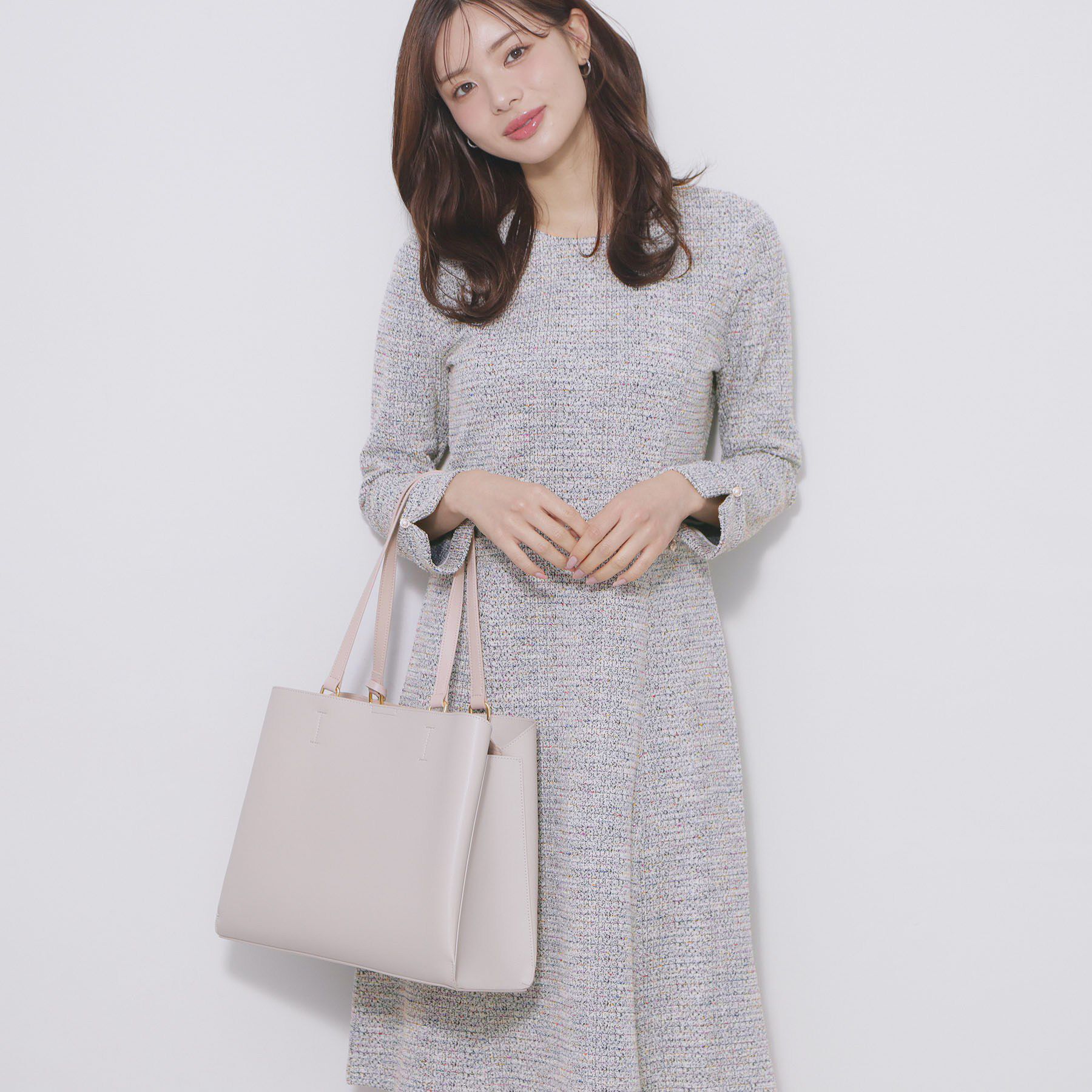 【インデックス/index】 ミックスツィードフレアワンピース【洗える/イージーアイロン/ストレッチ】《S〜3L》