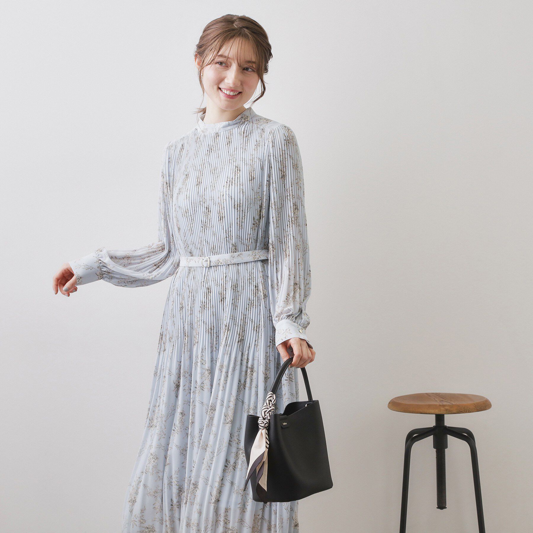 【インデックス/index】 フラワーハイネックタックワンピース【洗濯機OK/イージーアイロン/防シワ】