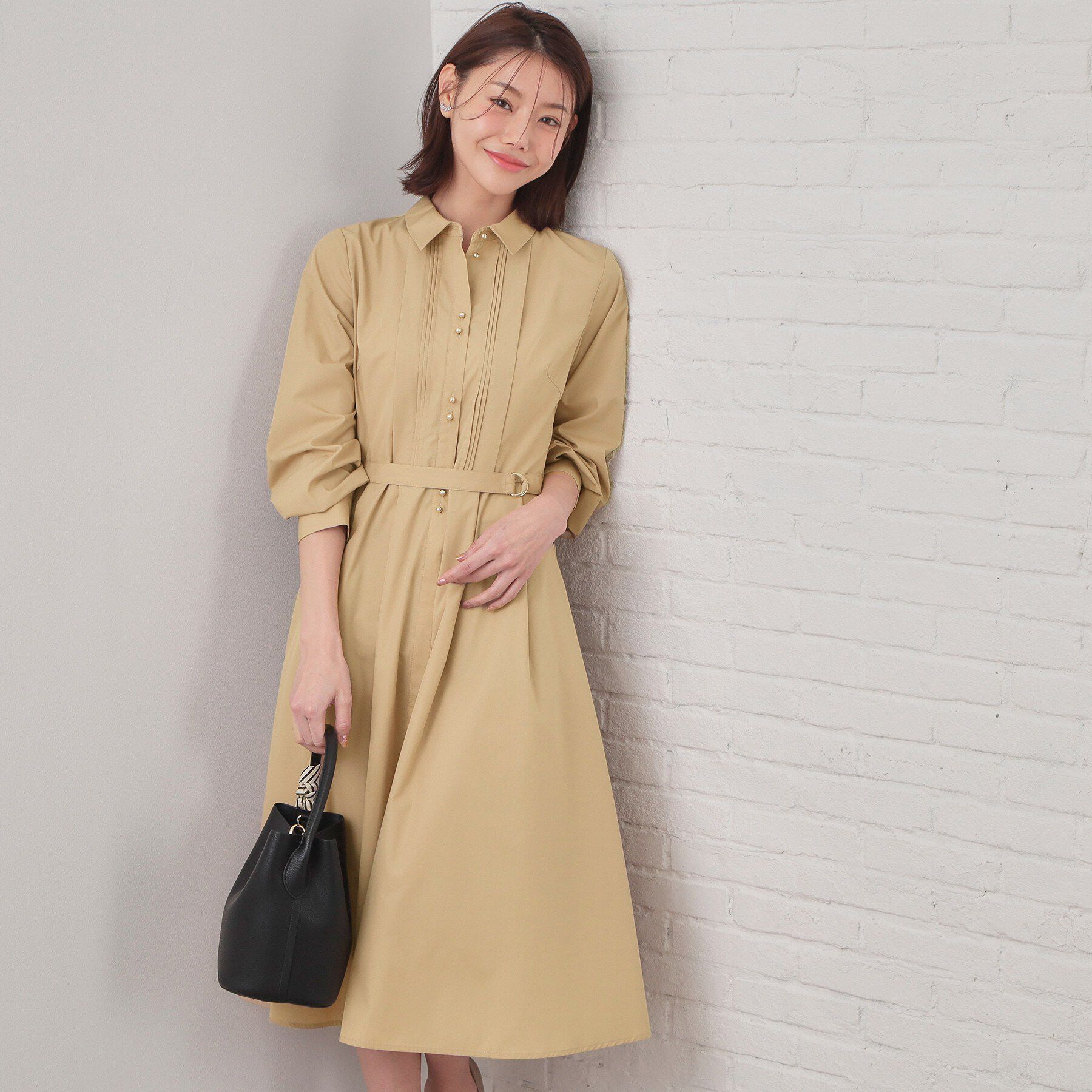 【インデックス/index】 ベルト付きタックシャツワンピース【洗濯機OK/イージーアイロン】