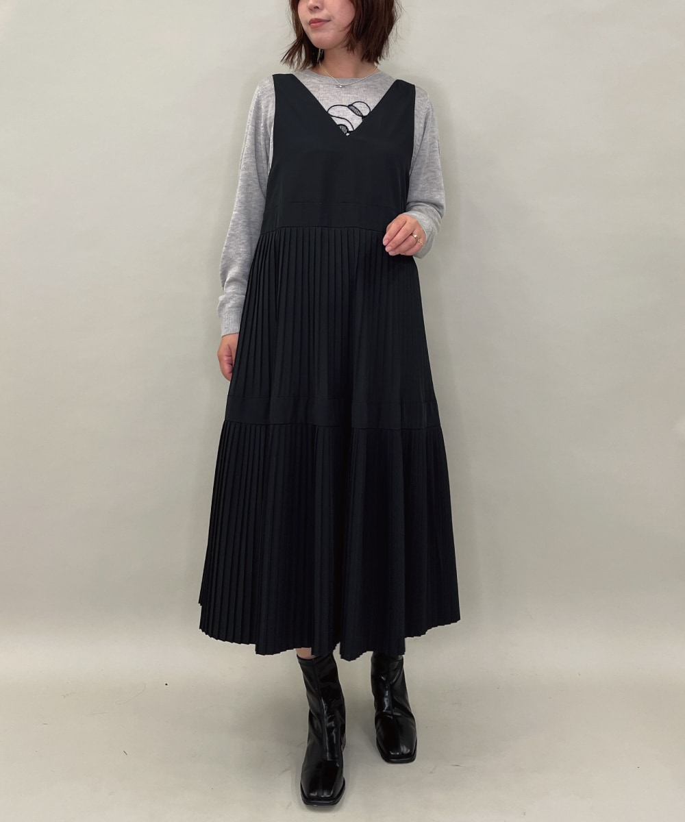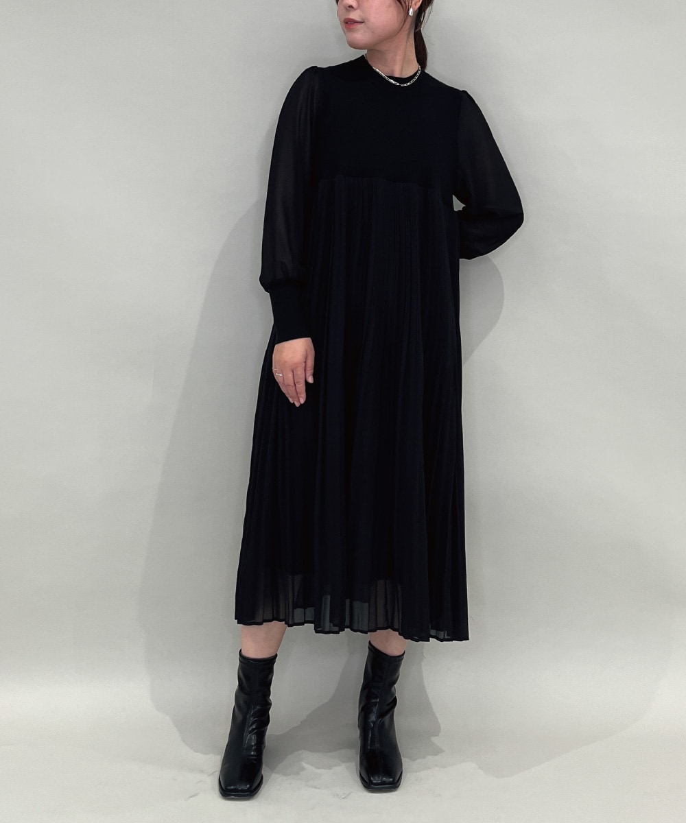 al’aise modulation(アレーズモジュレーション) ニットジョイント切り替えプリーツワンピース ブラック/黒 38