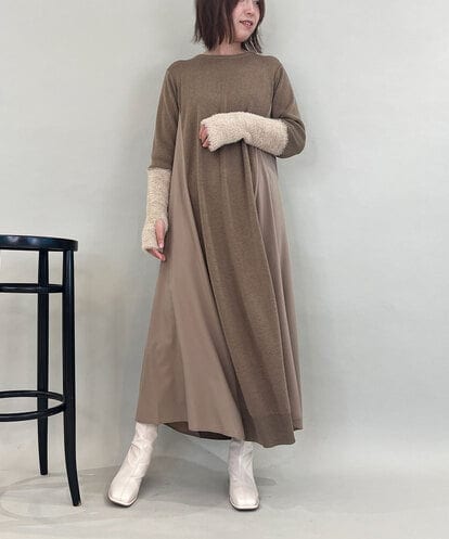 al’aise modulation(アレーズモジュレーション) 異素材切り替えニットワンピース ベージュ 38