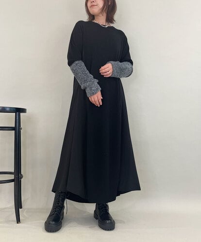 al’aise modulation(アレーズモジュレーション) 異素材ジョイント起毛ジャージーワンピース ブラック/黒 38