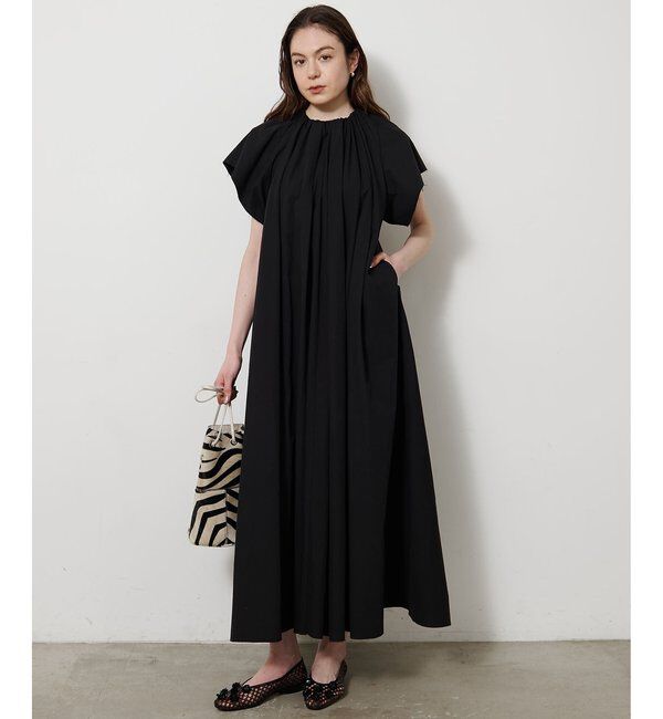 【2026SS】 一枚で華やかに決まる、タイプライター素材のワンピース ■タイプライター素材で仕立てたワンピース。 ■たっぷりとギャザーを入れたロングシルエ.. |