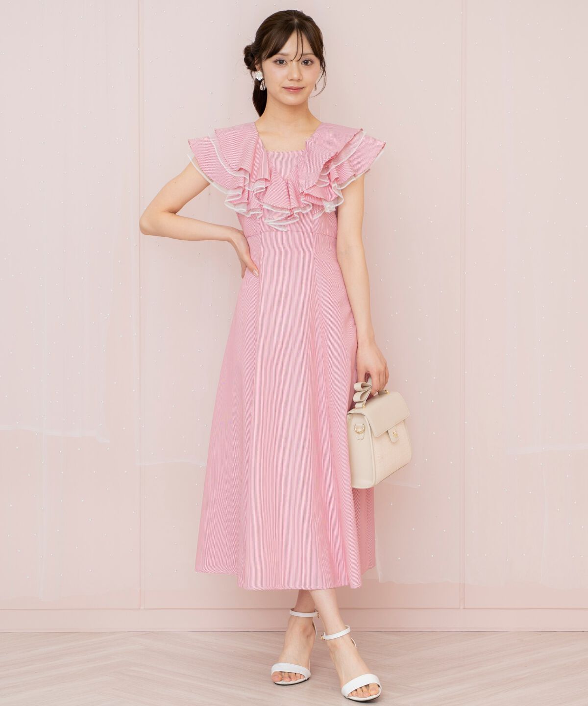 繊細なストライプ柄が上品に夏ムードを演出してくれる、ノースリーブワンピース【Design】・ラッフルフリルが肩周りを華やかに彩る、女性らしさ溢れる一着。・.. |