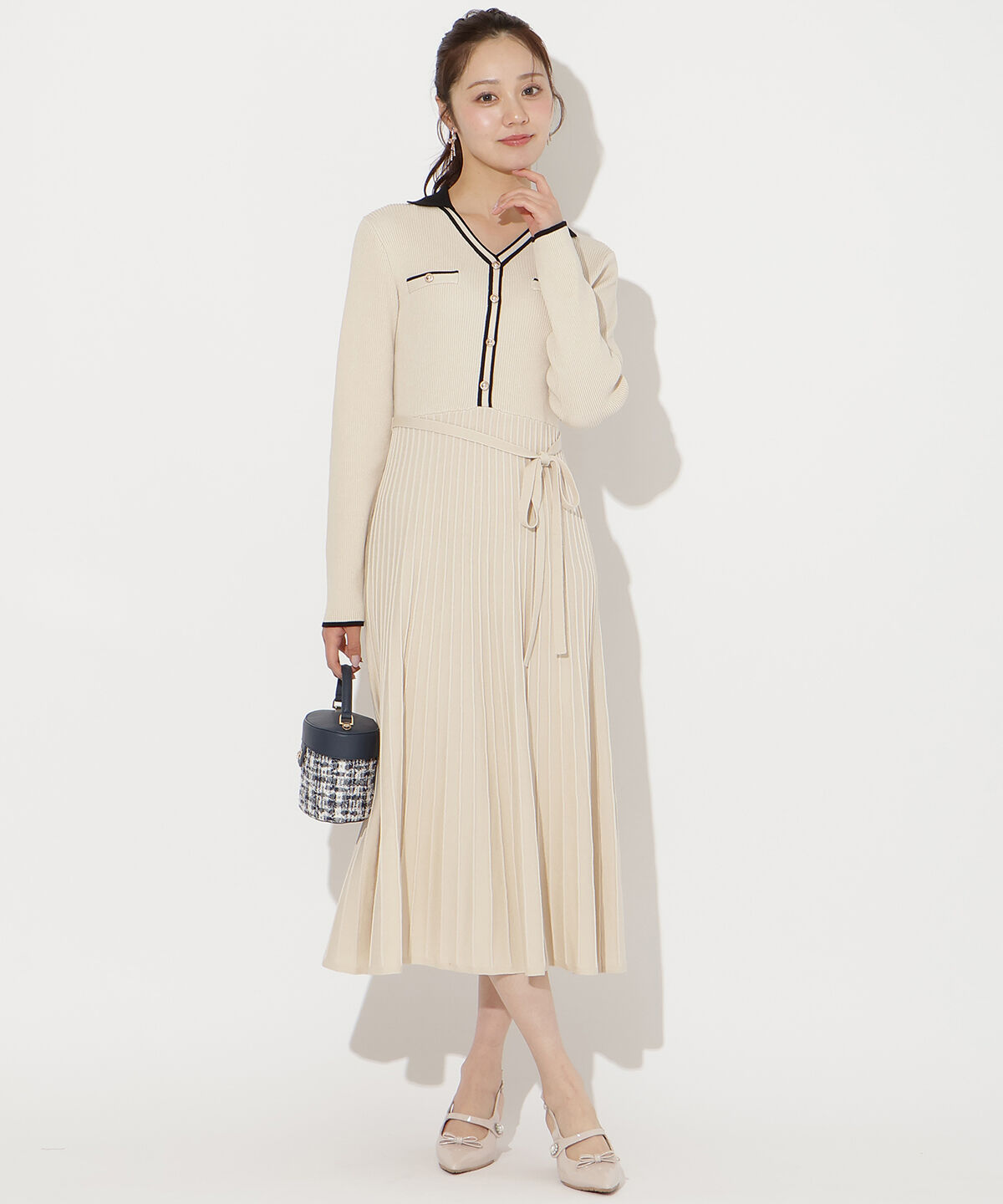 【ウィルセレクション/WILLSELECTION】 バイカラープリーツニットワンピース