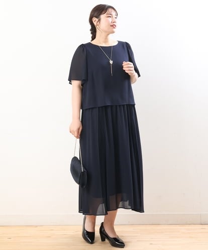 eur3(エウルキューブ) 【大きいサイズ/11号サイズあり】ジョーゼットプリーツワンピース ネイビー/紺 11