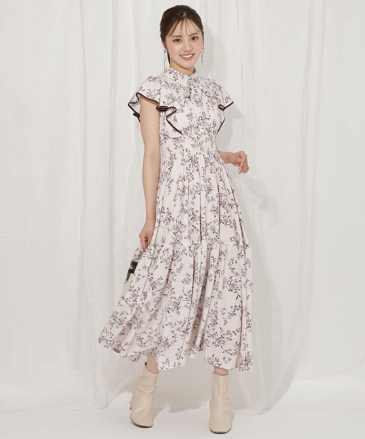 【ウィルセレクション/WILLSELECTION】 フラワープリントフリルスリーブワンピース