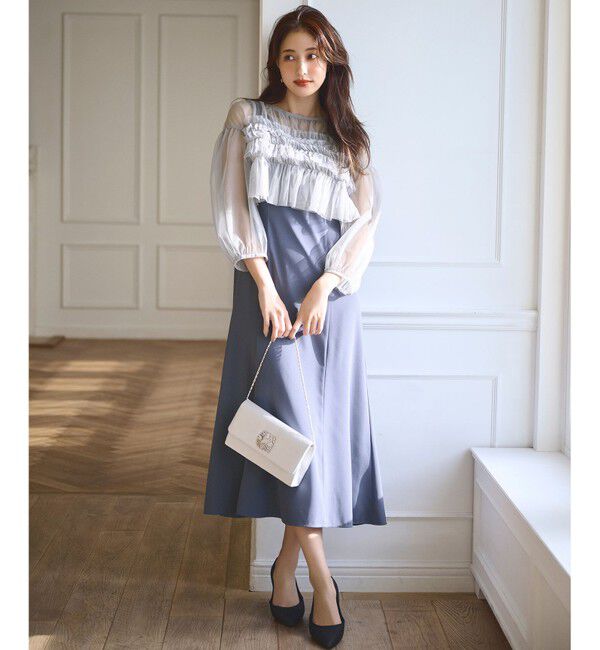 華やかなチュールトップスが目をひくトレンドライクなドレスセット■デザイントップス・トップスはフリル&ギャザーで顔周りを華やかに・チュールで抜け感もあ.. |