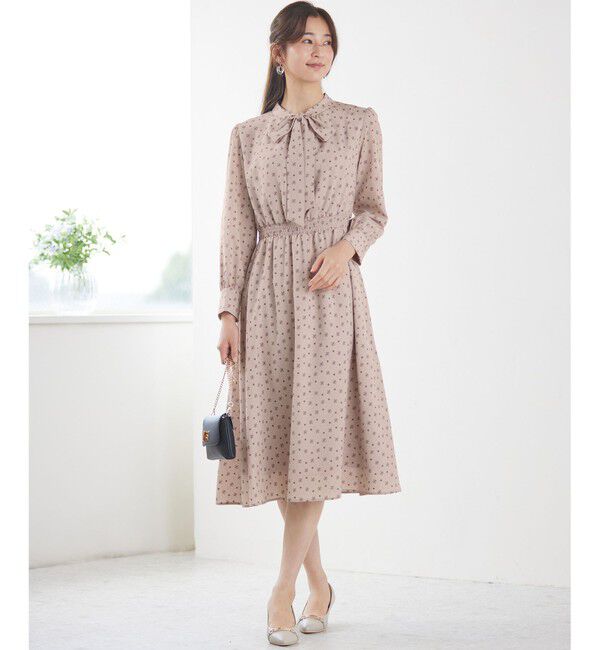 取り外し可能なボウタイデザインで着こなし自由自在!any SiSのモノグラム調プピントがクラシカルなワンピース■デザインボウタイが取り外し可能な2WAYワンピー.. |