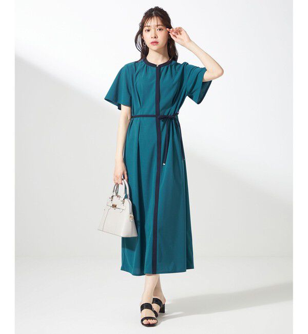 暑い夏にも快適にきちんと見え!エアリードレープシリーズ普段使いからオフィスまで幅広く着こなせるワンピース■デザインきちんと感のあるスタンドカラーが上.. |