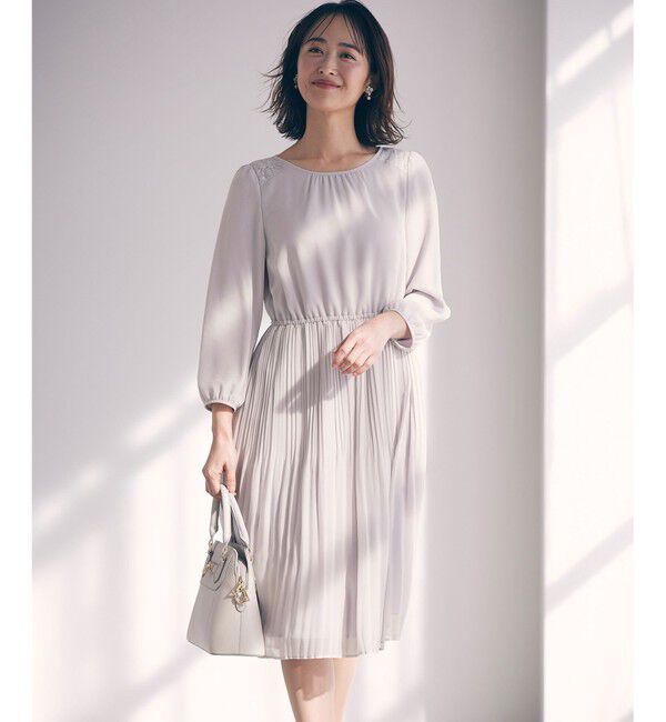 フェミニンなディテールを散りばめた、柔らかシフォン素材のワンピース■デザイン肩部分のレース切り替えと、繊細なプリーツスカートが華やかなワンピース。ウ.. |