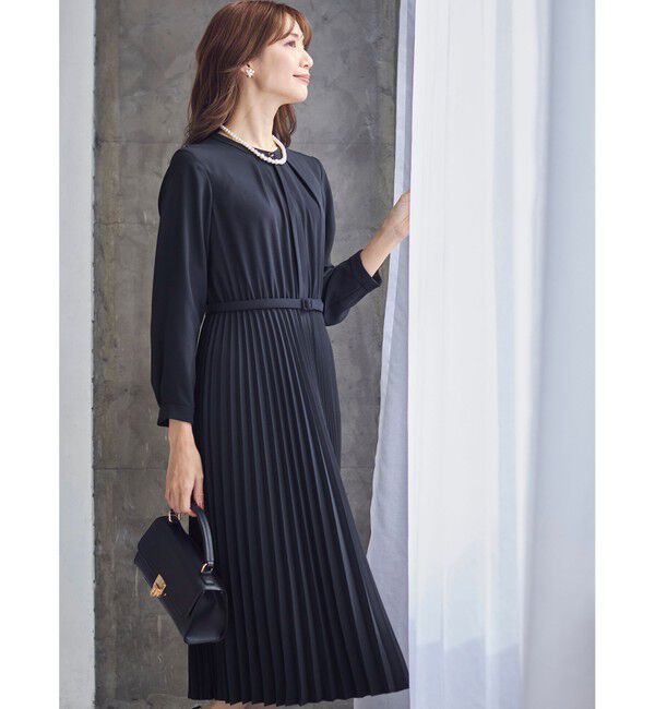 新色#072 スカイブルーが登場!上品で洗練されたムードを引き立てるプリーツワンピース■デザインセレモニーからオフィスシーンまで活躍する上品ワンピースです.. |