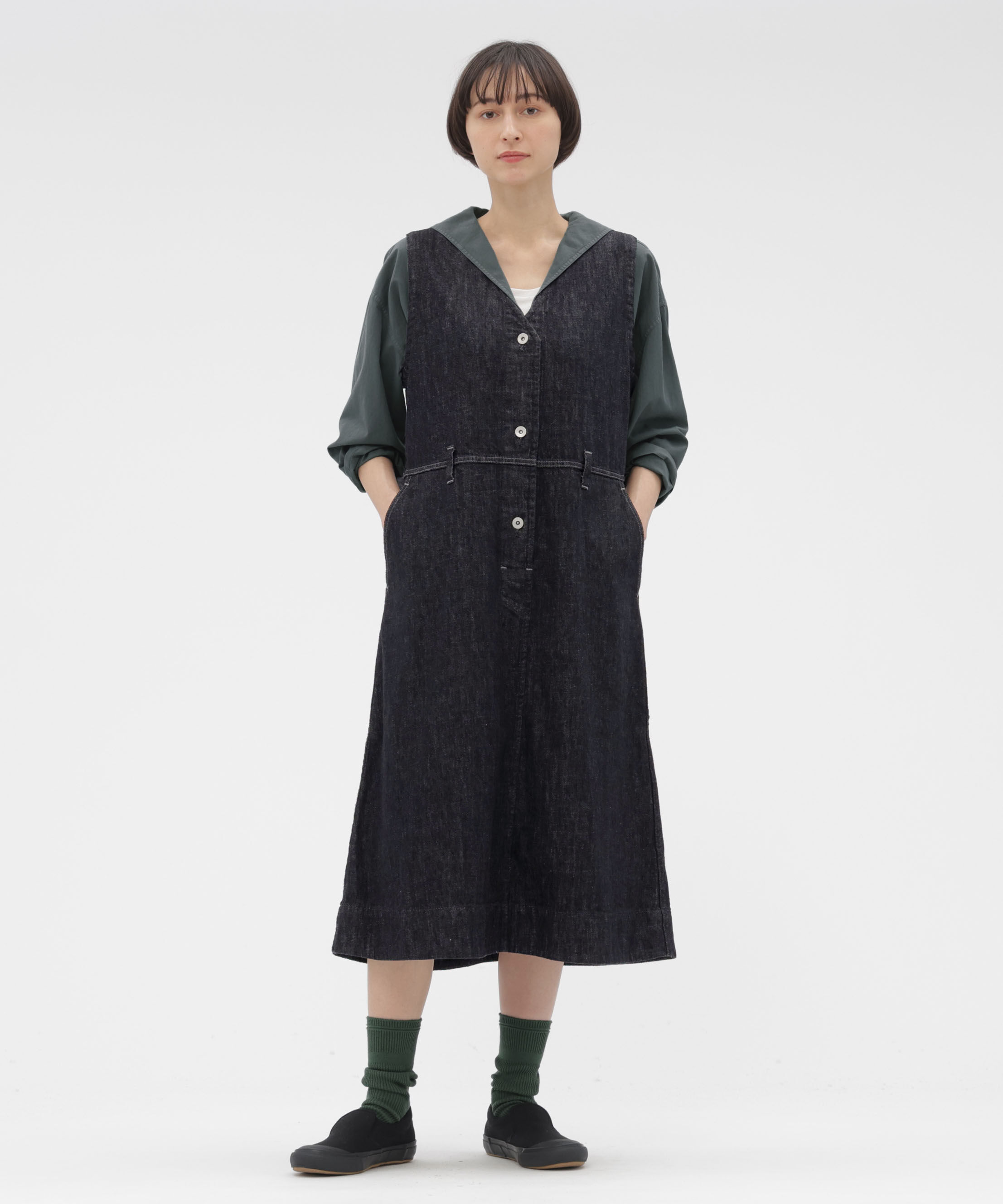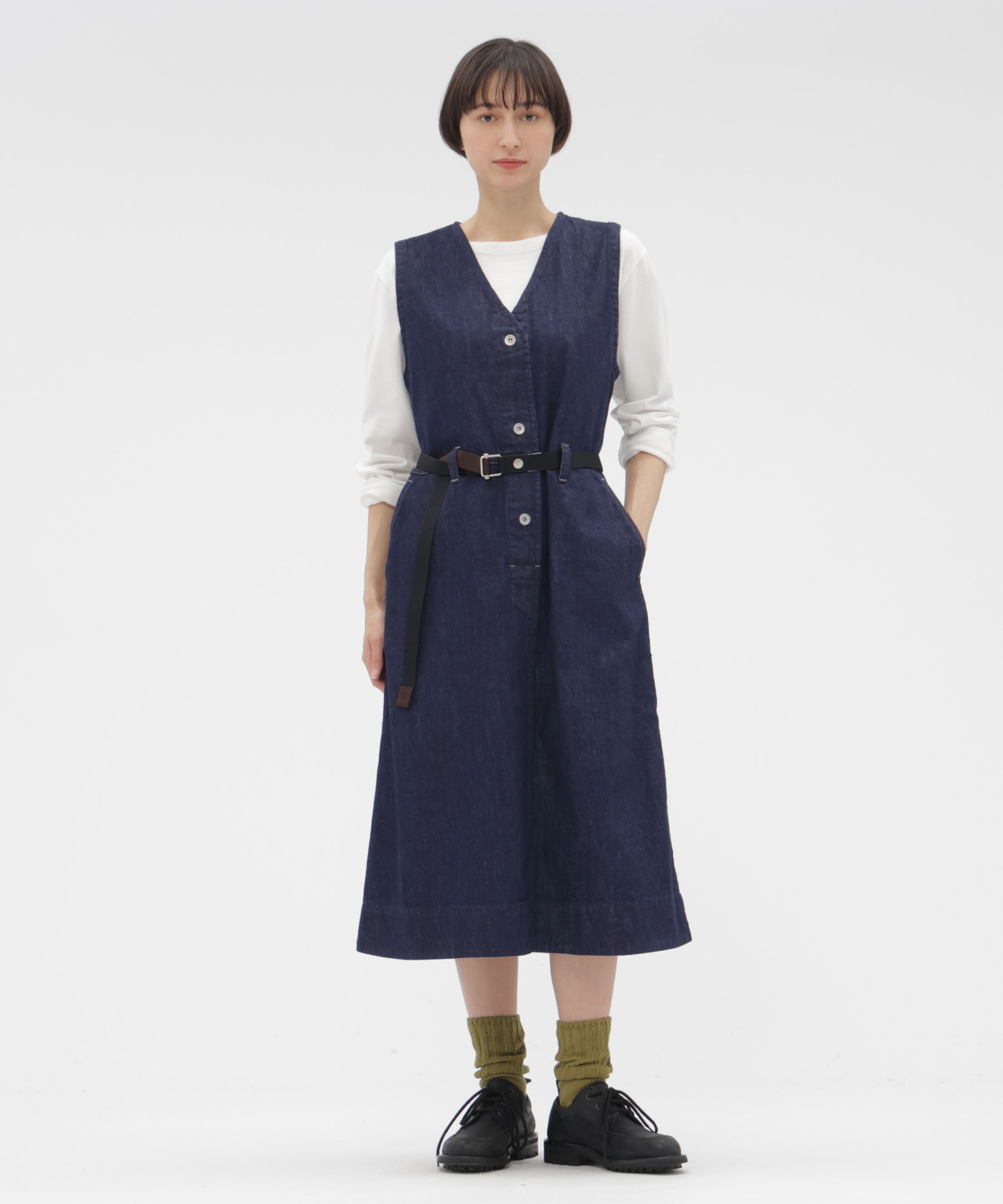 CANTON OVERALLS FOR MHL. のデニムドレス。旧式の紡績機による不均一なネップ感を再現した、CANTONオリジナルのライトオンスデニム素材(9oz)。履き込むほどに.. |