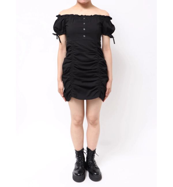 【エモダ/EMODA】 オフショルダーミニギャザーワンピース