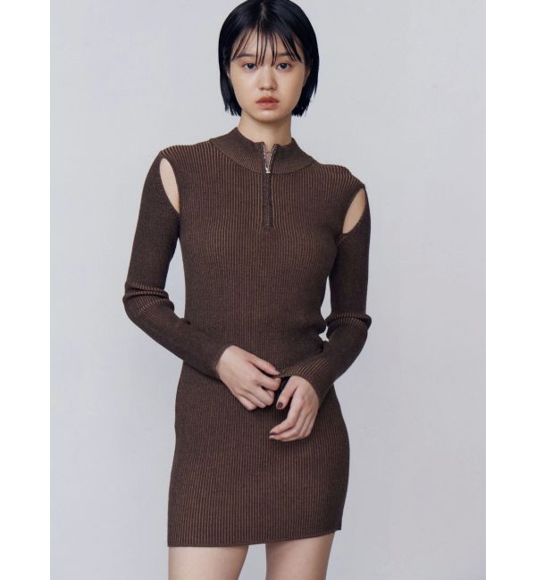 ジップとカットアウトで魅せるエッジの効いたニットワンピース■デザイン形はベーシックですが、ジップとカットアウトデザインがポイント。プレーティングリブ.. |
