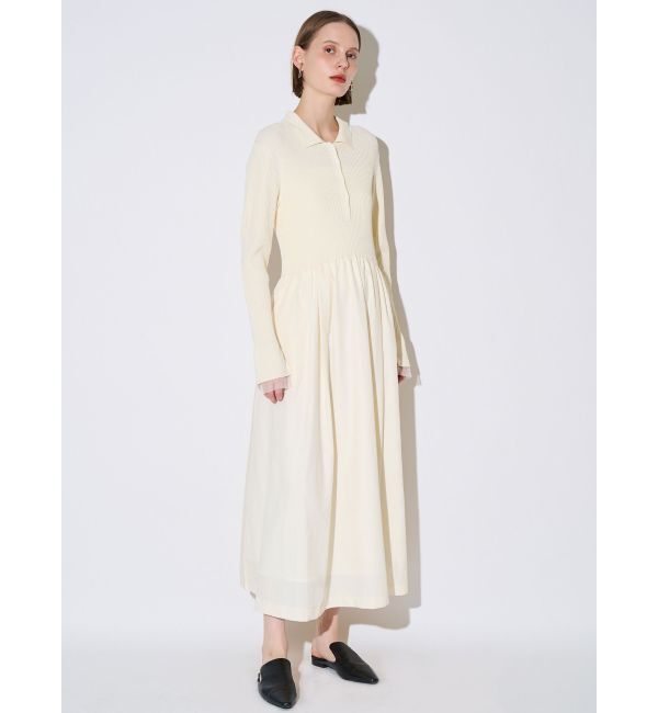 リブドッキングフィット&フレアワンピース ミニマルなポロカラーのニットドッキングワンピース。 スカート部分にハリのあるシャツ地をドッキングし、メリハリ.. |